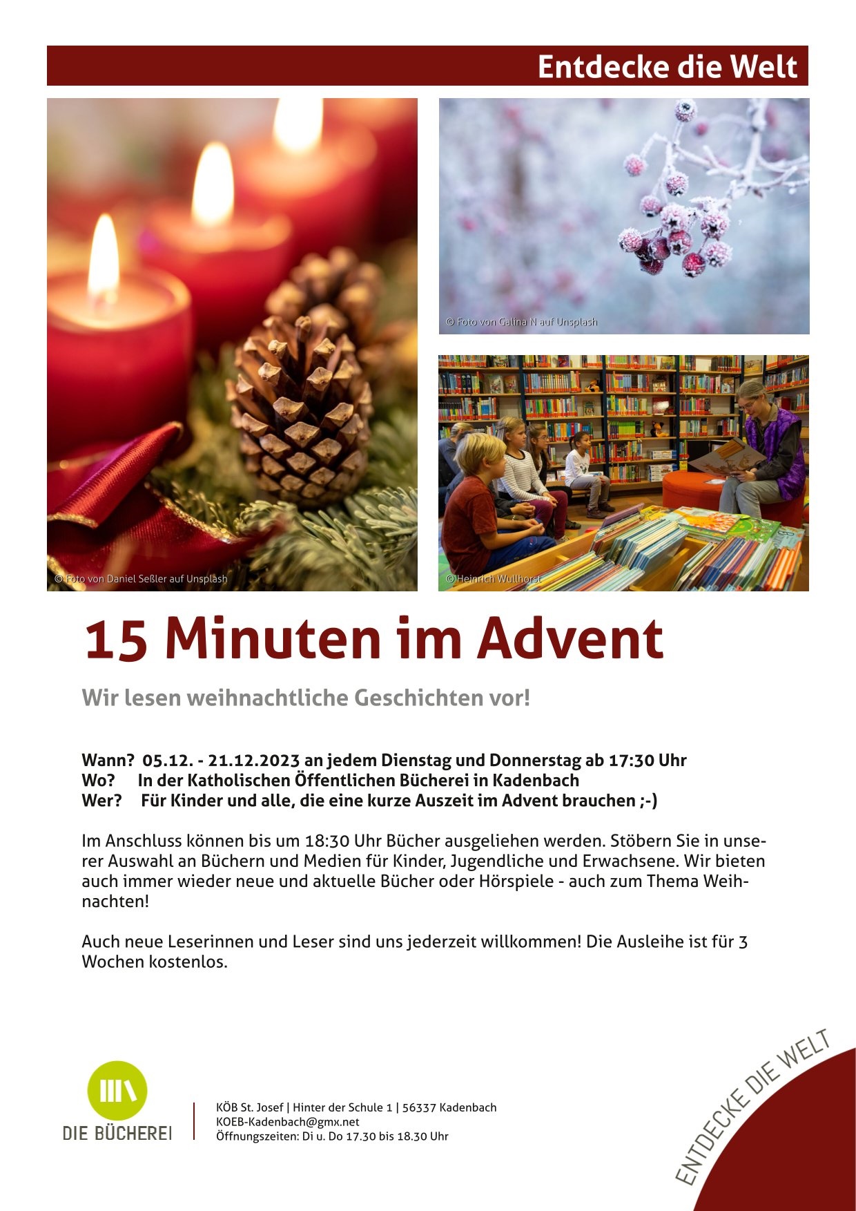 15 Minuten im Advent + Zu Google Kalender hinzufügen + iCal / Outlook exportieren Die Veranstaltung ist beendet. Datum 05 Dez. 2023 Abgelaufen! Uhrzeit 17:30 Preis 0,00 Standort Kadenbach Kategorie Kinder / Familie Teile diese Veranstaltung