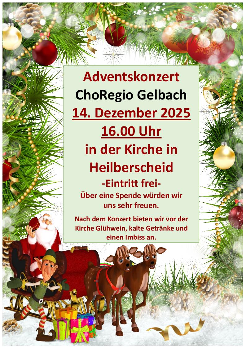 Adventskonzert Kirche + Zu Google Kalender hinzufügen + iCal / Outlook exportieren 00 Tage 00 Stunden 00 Minuten 00 Sekunden Datum 14 Dez. 2025 Uhrzeit 16:00 Labels Heilberscheid Standort Heilberscheid Kategorie Musik / Konzerte Teile diese Veranstaltung