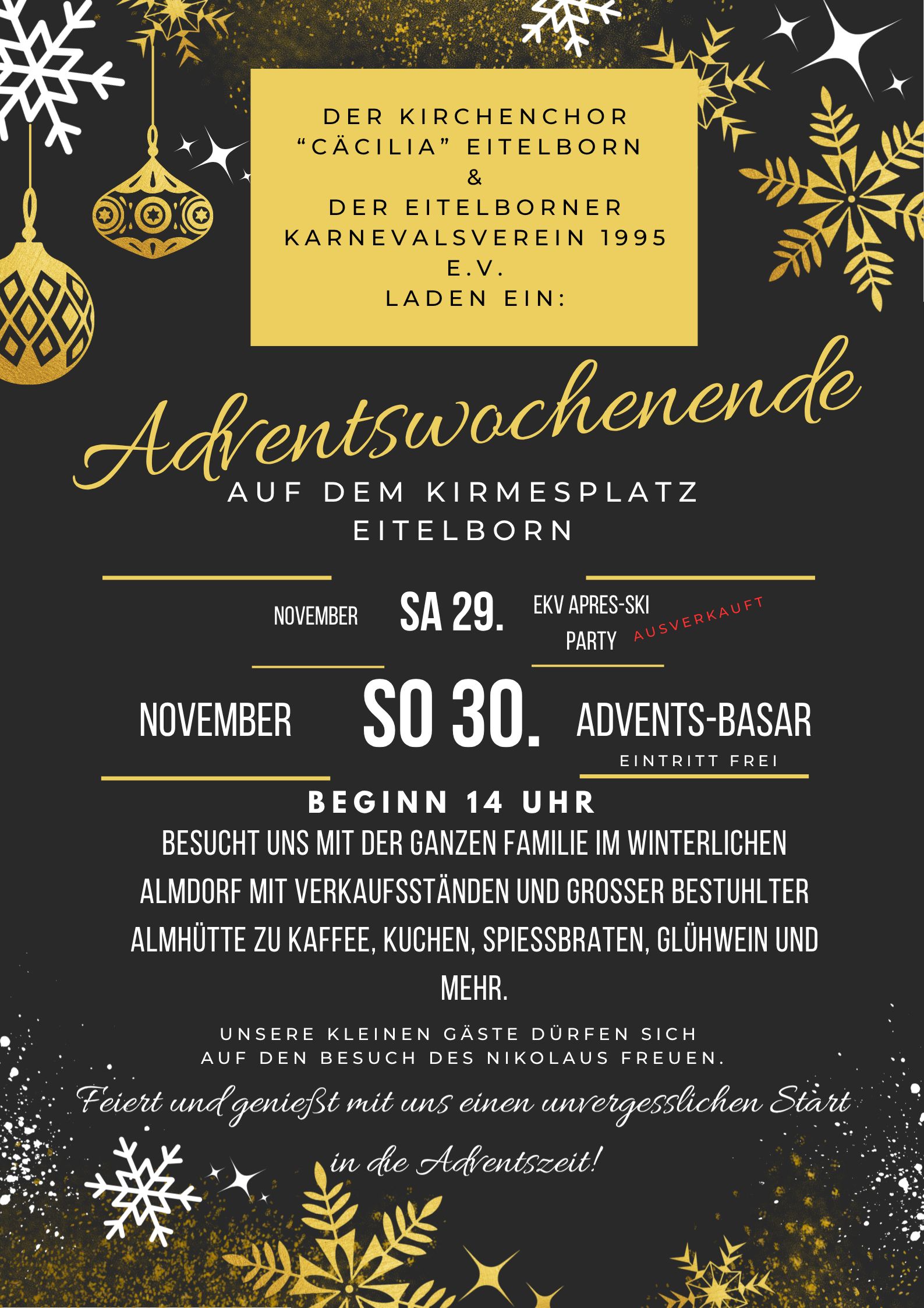 Adventswochenende Eitelborn Kirmesplatz + Zu Google Kalender hinzufügen + iCal / Outlook exportieren 00 Tage 00 Stunden 00 Minuten 00 Sekunden Datum 29 - 30 Nov. 2025 Uhrzeit Ganztags Labels Eitelborn Standort Eitelborn Kategorie Feste / Brauchtum Teile diese Veranstaltung