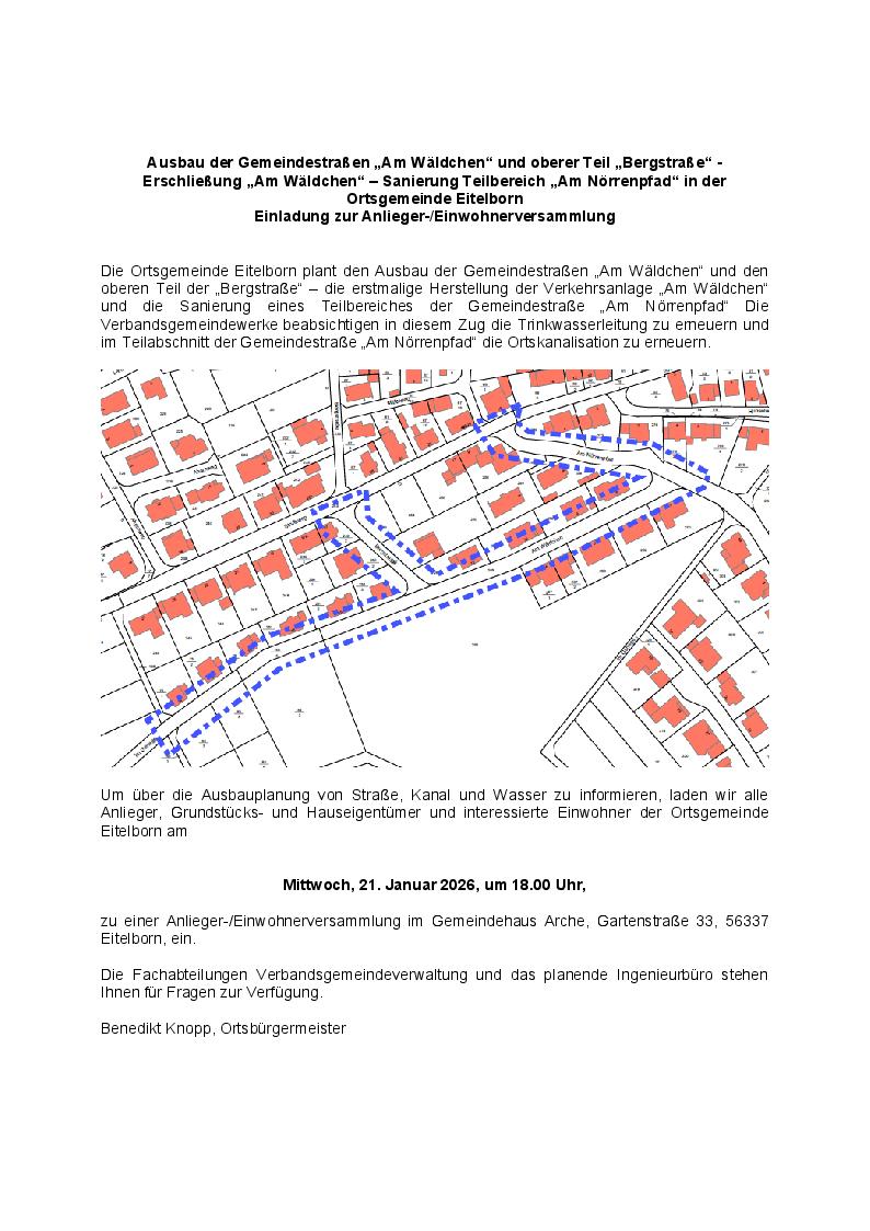 Anlieger-/Einwohnerversammlung Eitelborn Gemeindehaus Arche + Zu Google Kalender hinzufügen + iCal / Outlook exportieren 00 Tage 00 Stunden 00 Minuten 00 Sekunden Datum 21 Jan. 2026 Uhrzeit 18:00 Labels Eitelborn Standort Eitelborn Kategorie Wissen / Vortrag Teile diese Veranstaltung