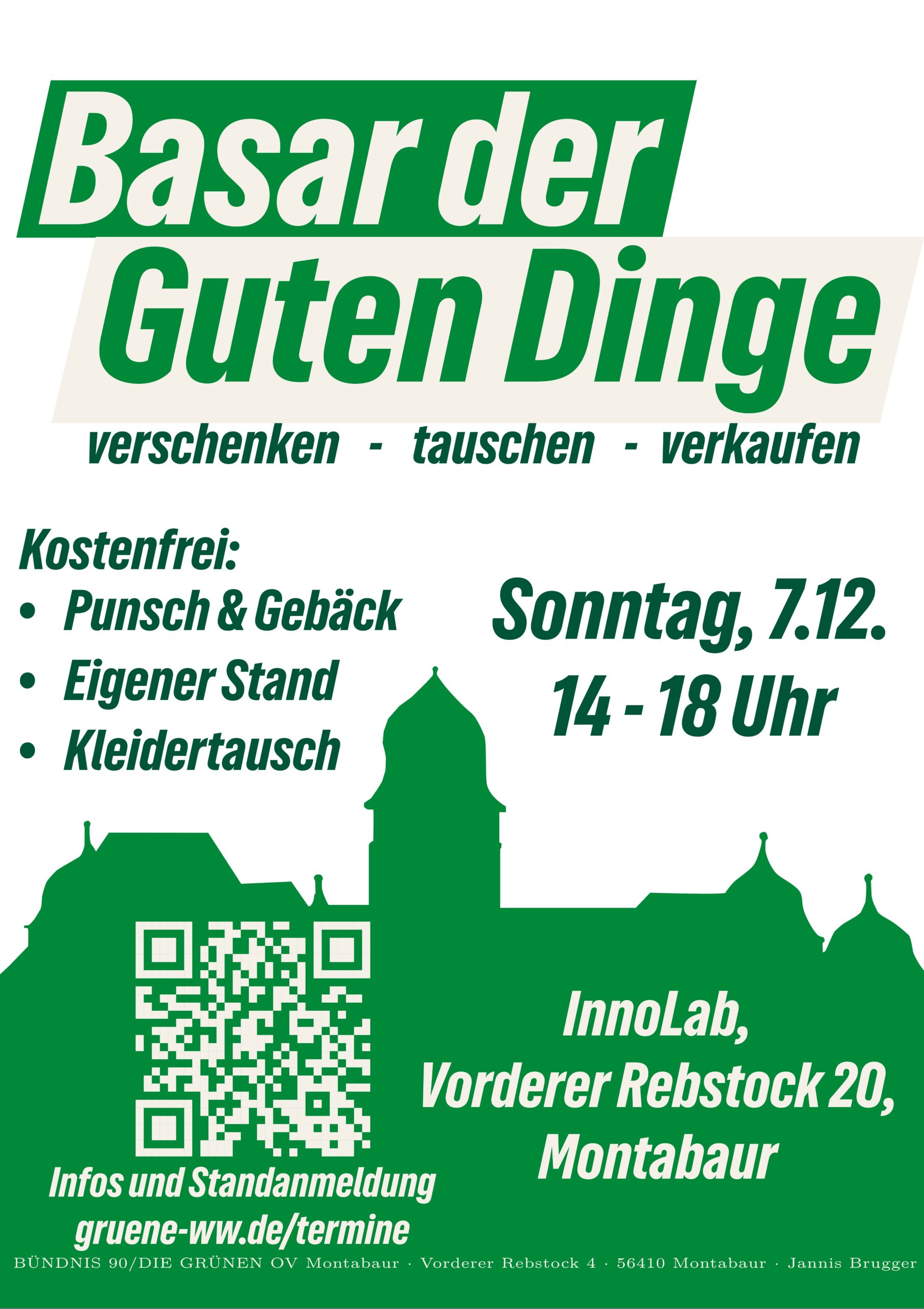 Du willst selbst verkaufen, tauschen oder verschenken? Dann melde dich unter montabaur@gruene-ww.de für deinen Tisch an – für 1, 2 oder 4 Stunden.
