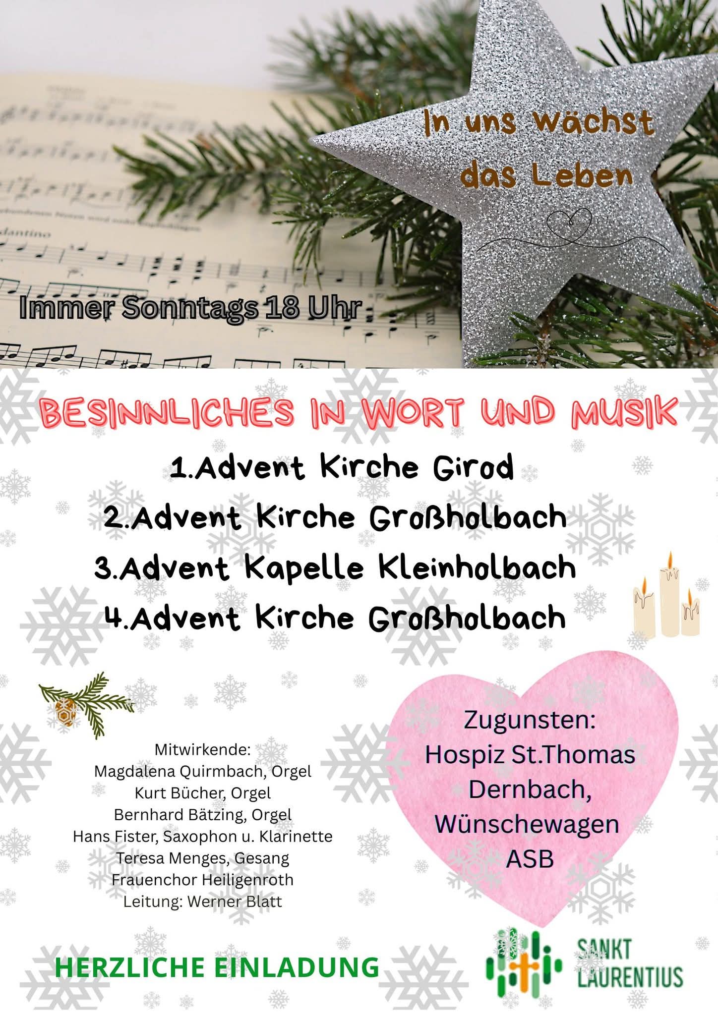 Besinnliches in Wort und Musik Kapelle Kleinholbach + Zu Google Kalender hinzufügen + iCal / Outlook exportieren Die Veranstaltung ist beendet. Datum 14 Dez. 2025 Abgelaufen! Uhrzeit 18:00 Labels Girod Standort Girod-Kleinholbach Kategorie Feste / Brauchtum Teile diese Veranstaltung