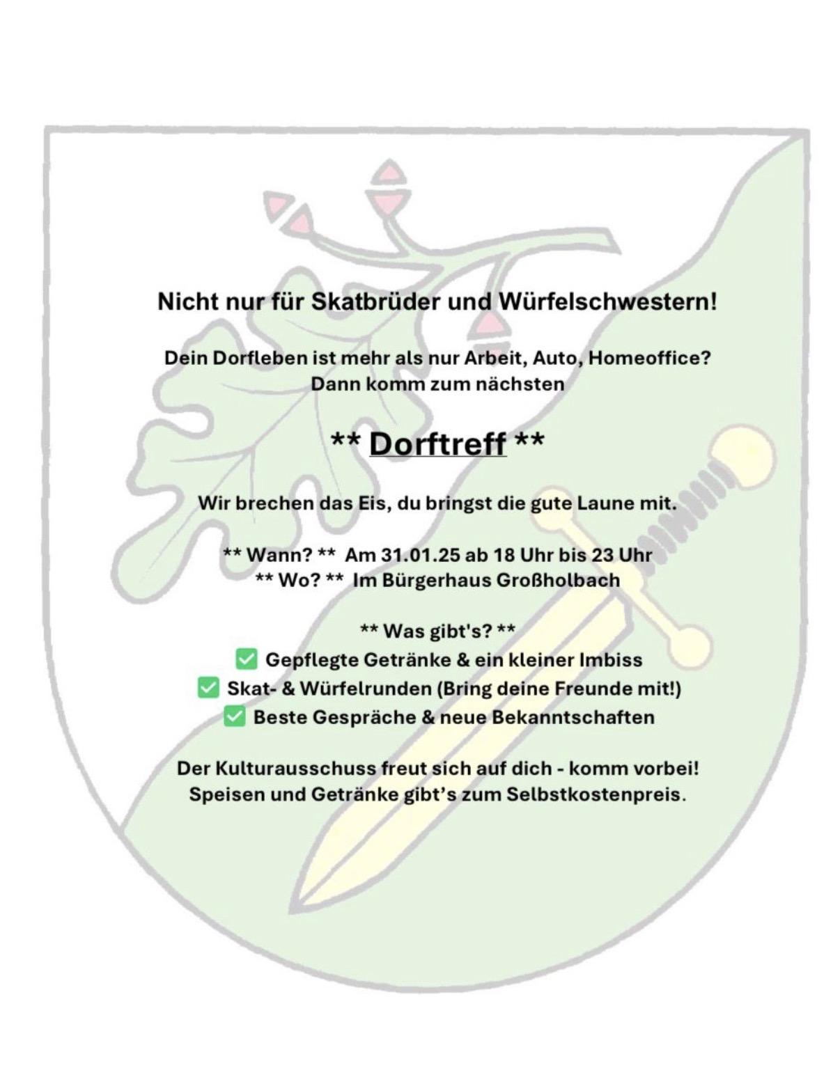 Dorftreff Bürgerhaus + Zu Google Kalender hinzufügen + iCal / Outlook exportieren 00 Tage 00 Stunden 00 Minuten 00 Sekunden Datum 31 Jan. 2026 Uhrzeit 18:00 Labels Großholbach Standort Großholbach Kategorie Feste / Brauchtum Teile diese Veranstaltung