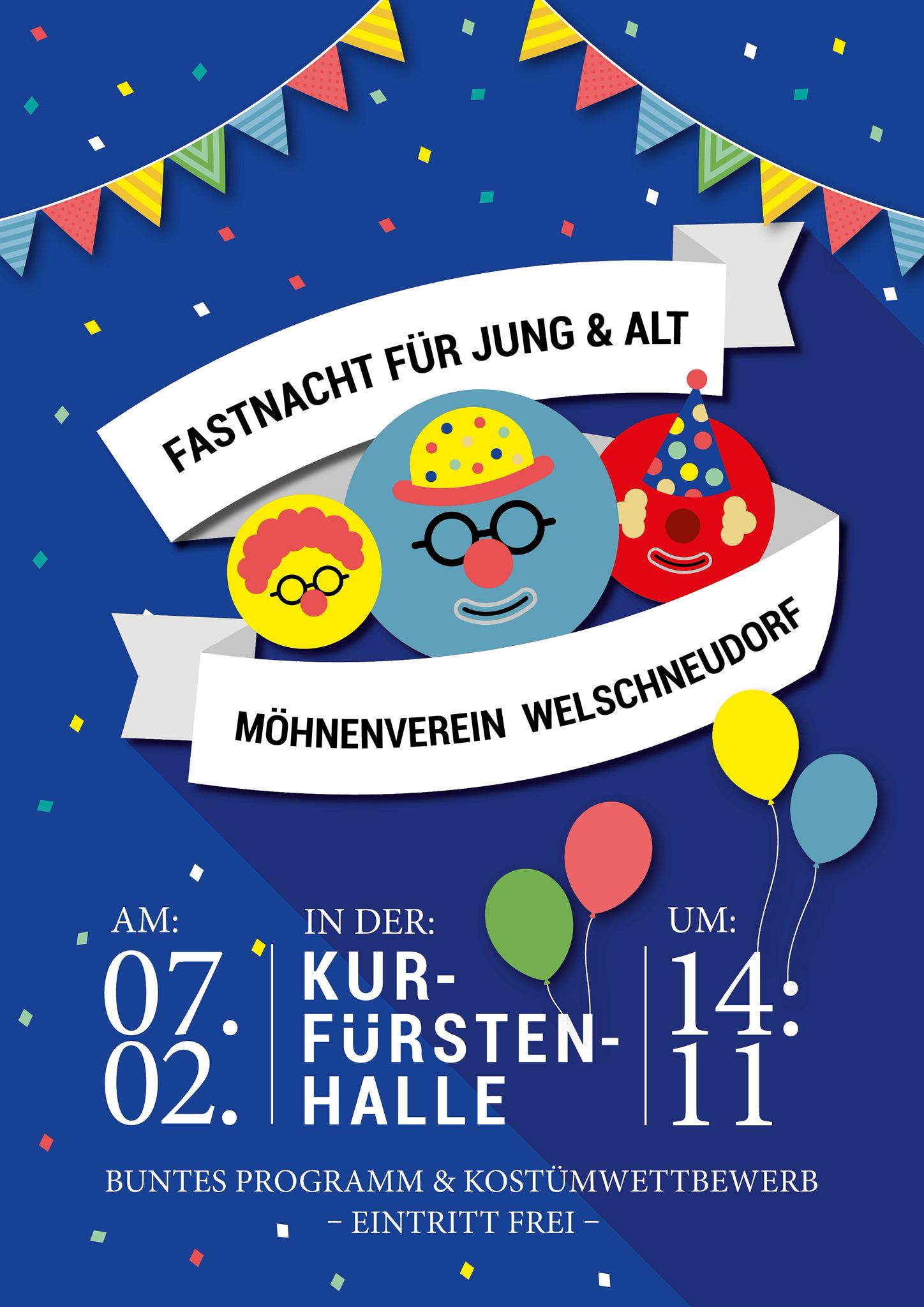 Fastnacht für Jung & Alt Kurfürstenhalle + Zu Google Kalender hinzufügen + iCal / Outlook exportieren Die Veranstaltung ist beendet. Datum 07 Feb. 2026 Abgelaufen! Uhrzeit 14:10 Labels Welschneudorf Standort Welschneudorf Kategorie Feste / Brauchtum Teile diese Veranstaltung