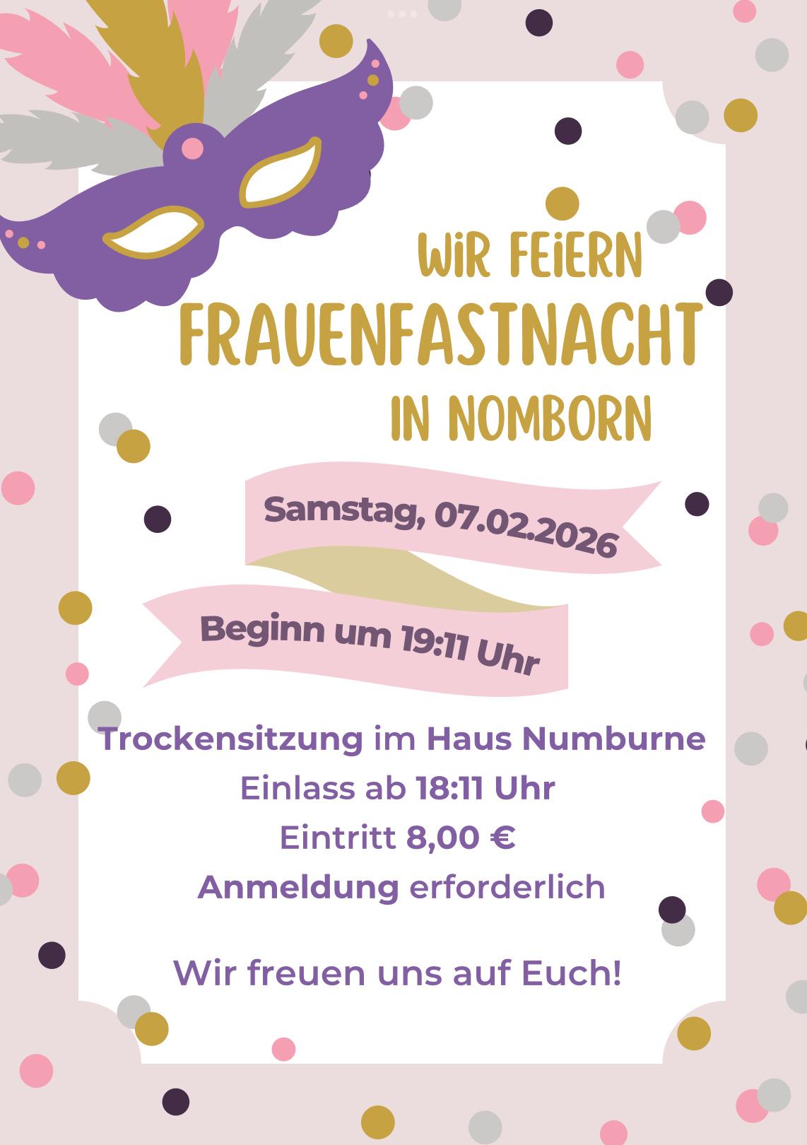 Frauenfastnacht Nomborn Haus Numburne + Zu Google Kalender hinzufügen + iCal / Outlook exportieren 00 Tage 00 Stunden 00 Minuten 00 Sekunden Datum 07 Feb. 2026 Uhrzeit 19:10 Labels Nomborn Standort Nomborn Kategorie Feste / Brauchtum Teile diese Veranstaltung