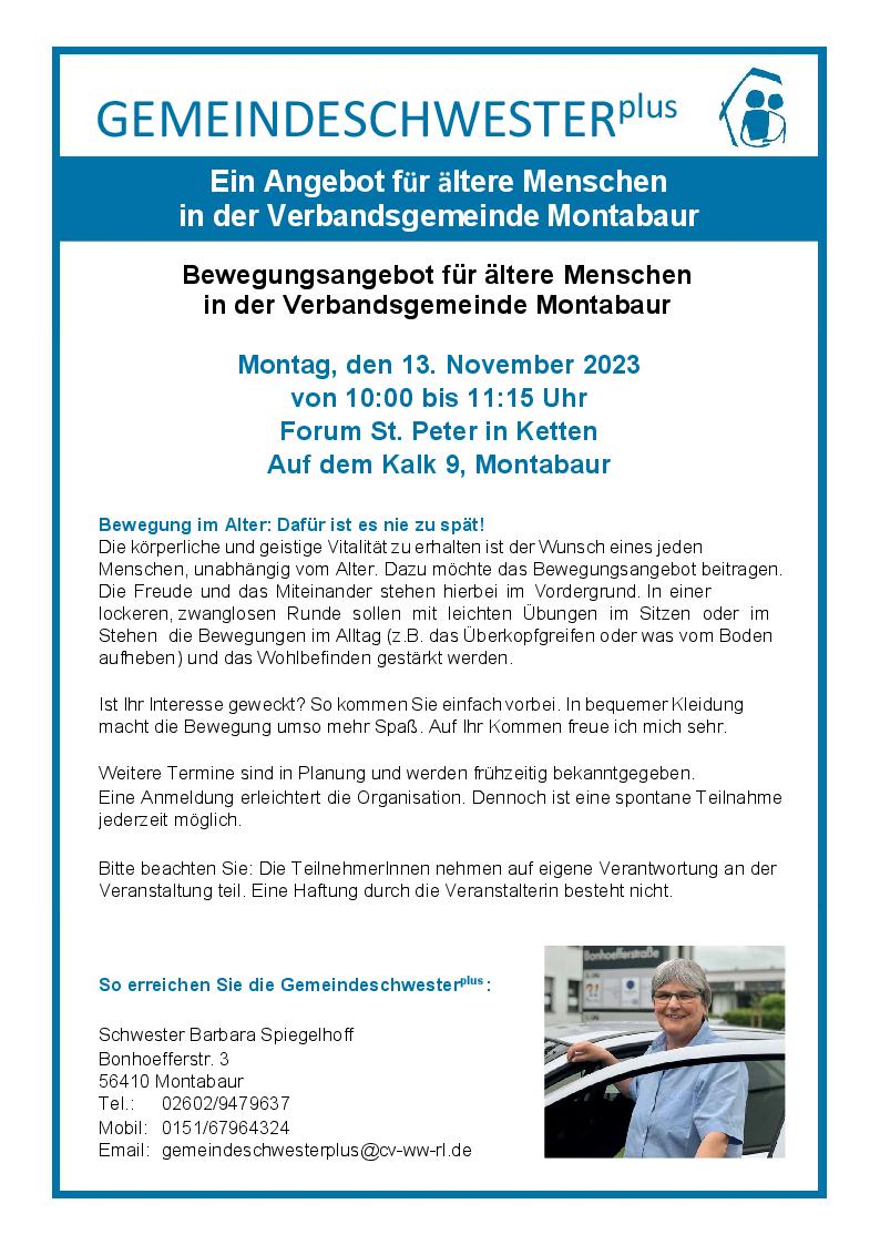 Gemeindeschwester plus: Bewegungsangebot für ältere Menschen + Zu Google Kalender hinzufügen + iCal / Outlook exportieren Die Veranstaltung ist beendet. Datum 13 Nov. 2023 Abgelaufen! Uhrzeit 10:00 Standort Montabaur Kategorie Gesundheit / Sport Teile diese Veranstaltung