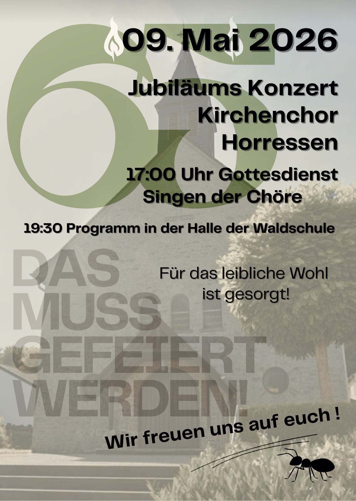 Jubiläums Konzert Kirchenchor Horressen Jubiläums Konzert Kirchenchor Horressen + Zu Google Kalender hinzufügen + iCal / Outlook exportieren 00 Tage 00 Stunden 00 Minuten 00 Sekunden Datum 09 Mai 2026 Uhrzeit 17:00 Labels MT-Horressen Standort Montabaur-Horressen Kategorie Musik / Konzerte Teile diese Veranstaltung