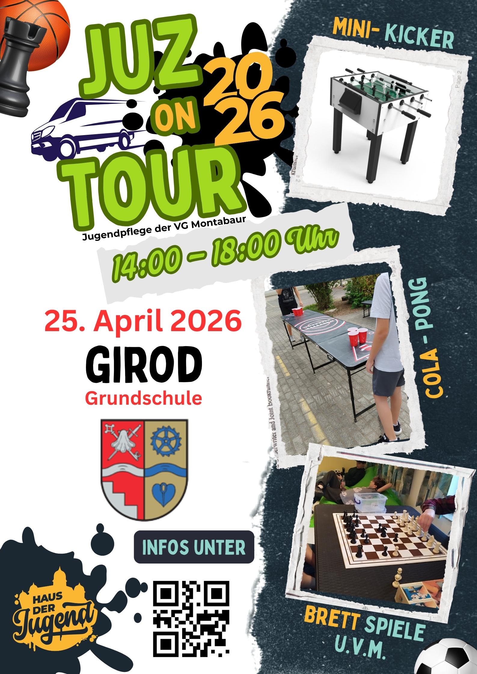 JUZ on Tour in Girod JUZ on Tour in Girod + Zu Google Kalender hinzufügen + iCal / Outlook exportieren 00 Tage 00 Stunden 00 Minuten 00 Sekunden Datum 25 Apr. 2026 Uhrzeit 14:00 Labels Girod Standort Girod Kategorie Kinder / Familie Teile diese Veranstaltung