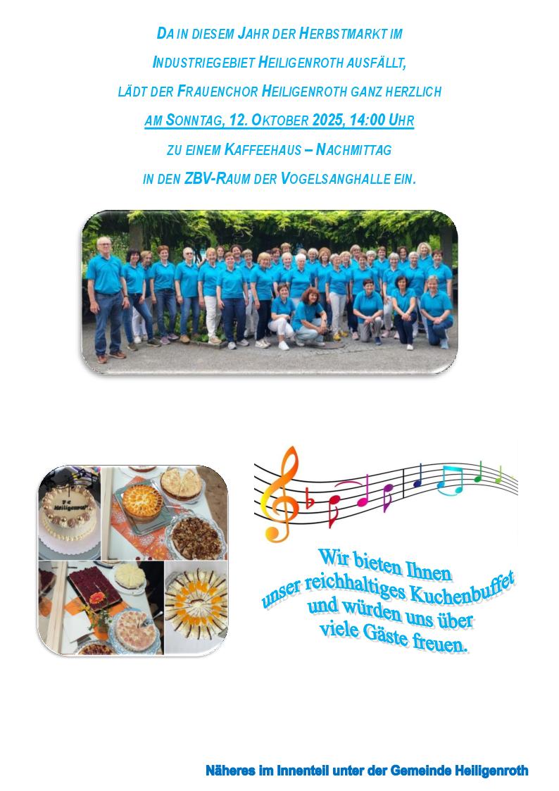 Kaffeehausnachmittag des Frauenchors Heiligenroth Vogelsanghalle + Zu Google Kalender hinzufügen + iCal / Outlook exportieren Die Veranstaltung ist beendet. Datum 12 Okt. 2025 Abgelaufen! Uhrzeit 14:00 Labels Heiligenroth Standort Heiligenroth Kategorie Essen / Genuss Musik / Konzerte Teile diese Veranstaltung
