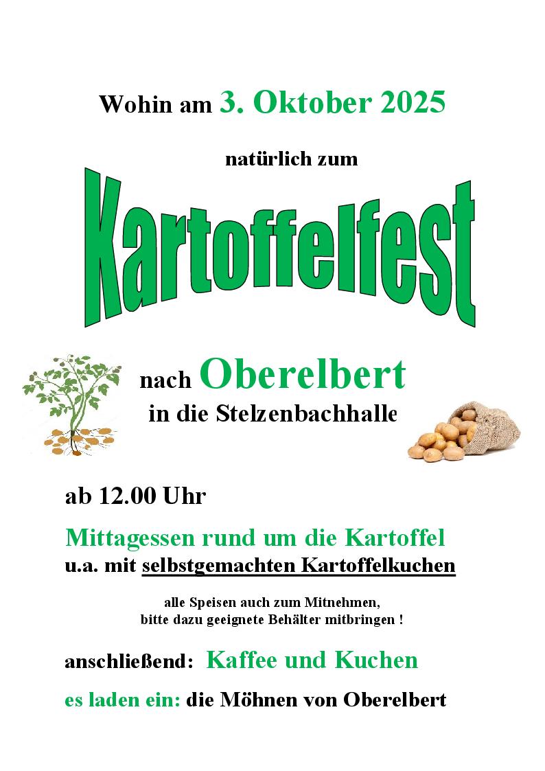 Kartoffelfest Stelzenbachhalle + Zu Google Kalender hinzufügen + iCal / Outlook exportieren Die Veranstaltung ist beendet. Datum 03 Okt. 2025 Abgelaufen! Uhrzeit 12:00 Labels Oberelbert Standort Oberelbert Kategorie Essen / Genuss Feste / Brauchtum Teile diese Veranstaltung