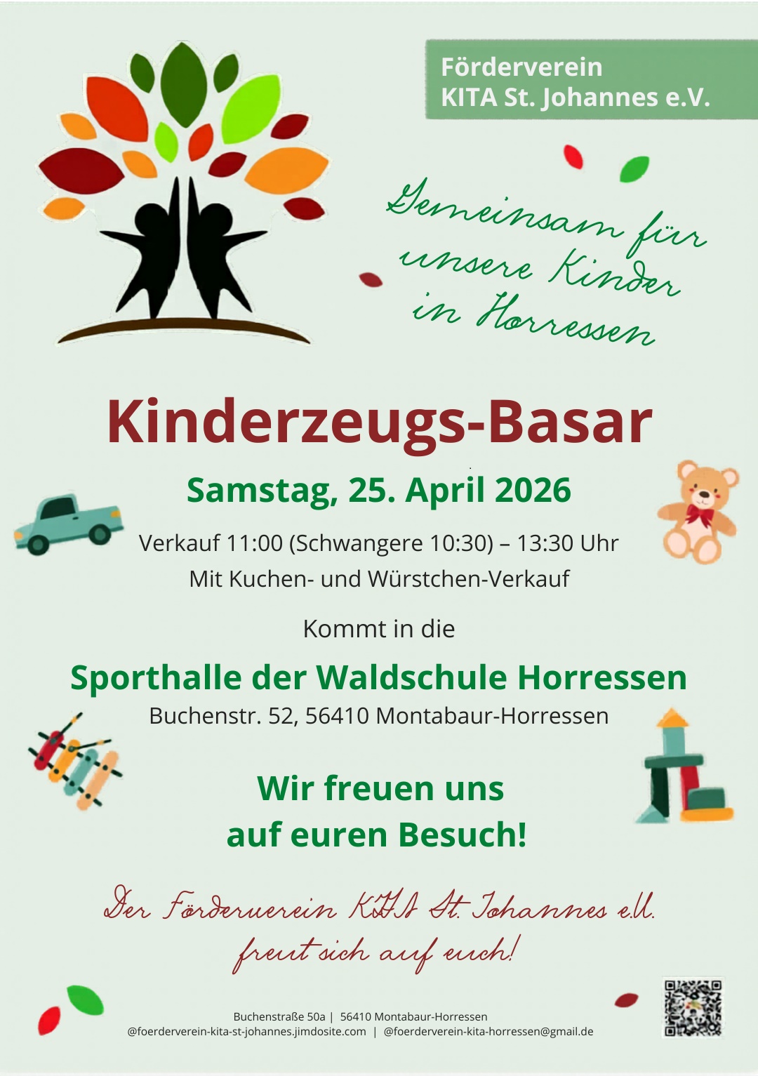 Kinderzeugs-Basar Kinderzeugs-Basar + Zu Google Kalender hinzufügen + iCal / Outlook exportieren 00 Tage 00 Stunden 00 Minuten 00 Sekunden Datum 25 Apr. 2026 Uhrzeit 10:00 Labels MT-Horressen Standort Montabaur-Horressen Kategorie Kinder / Familie Märkte / Shopping Teile diese Veranstaltung
