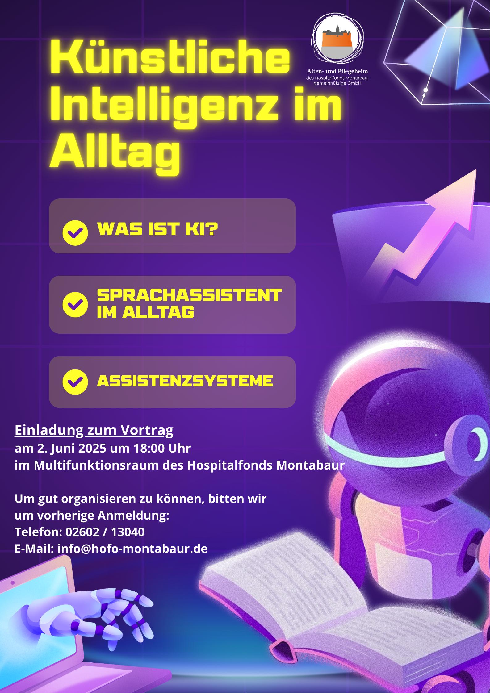 Künstliche Intelligenz im Alltag Vortrag + Zu Google Kalender hinzufügen + iCal / Outlook exportieren Die Veranstaltung ist beendet. Datum 02 Juni 2025 Abgelaufen! Uhrzeit 18:00 Labels Montabaur Standort Montabaur Kategorie Wissen / Vortrag Teile diese Veranstaltung