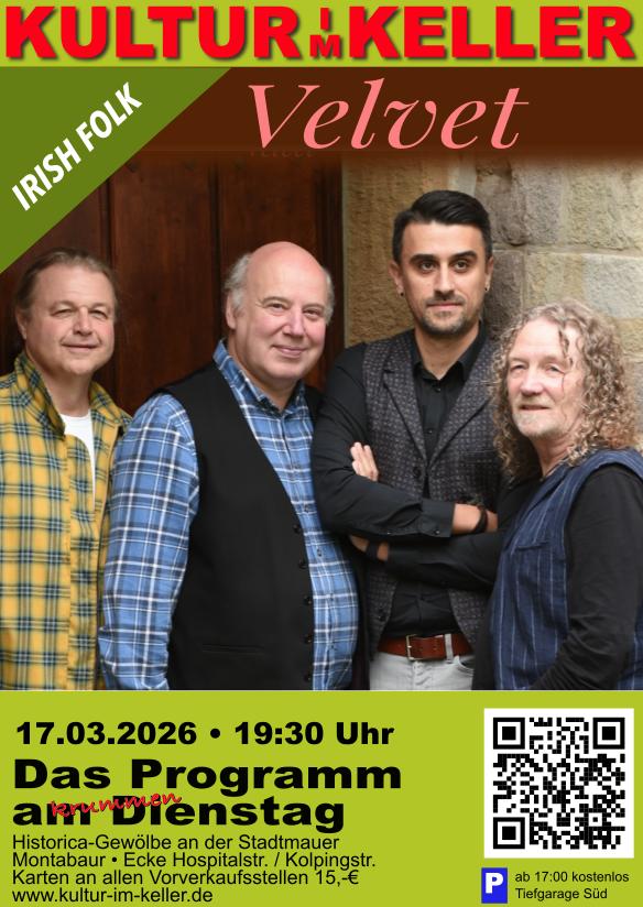 Kultur im Keller: Velvet Historica-Gewölbe an der Stadtmauer + Zu Google Kalender hinzufügen + iCal / Outlook exportieren 00 Tage 00 Stunden 00 Minuten 00 Sekunden Datum 17 März 2026 Uhrzeit 19:30 Labels Montabaur Standort Montabaur Kategorie Musik / Konzerte Teile diese Veranstaltung