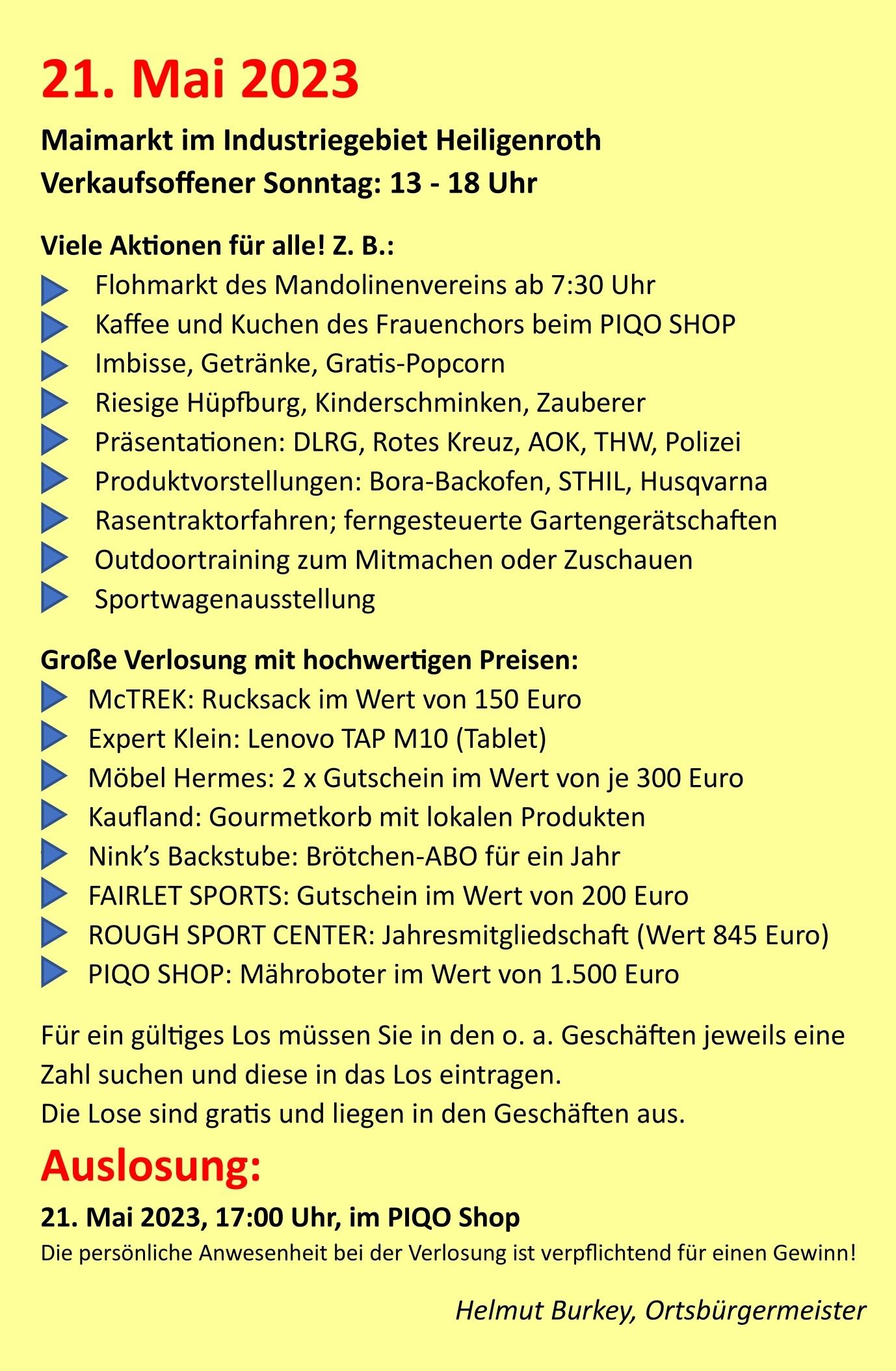 Maimarkt im Industriegebiet Heiligenroth + Zu Google Kalender hinzufügen + iCal / Outlook exportieren Die Veranstaltung ist beendet. Datum 21 Mai 2023 Abgelaufen! Uhrzeit 13:00 Standort Heiligenroth Kategorie Märkte / Shopping Teile diese Veranstaltung