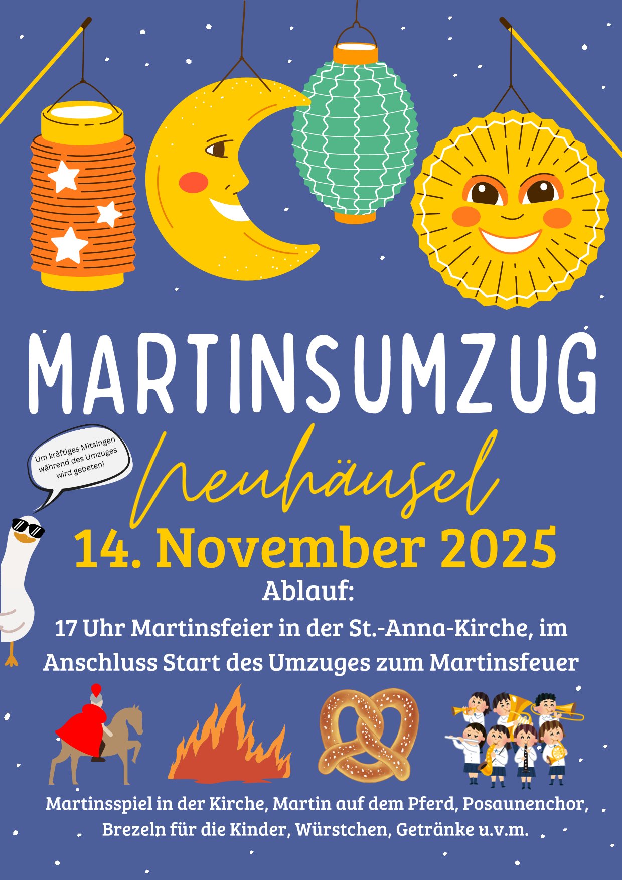 Martinsumzug Neuhäusel Martinsumzug Neuhäusel + Zu Google Kalender hinzufügen + iCal / Outlook exportieren 00 Tage 00 Stunden 00 Minuten 00 Sekunden Datum 14 Nov. 2025 Uhrzeit 17:00 Labels Neuhäusel Standort Neuhäusel Kategorie Feste / Brauchtum Kinder / Familie Teile diese Veranstaltung