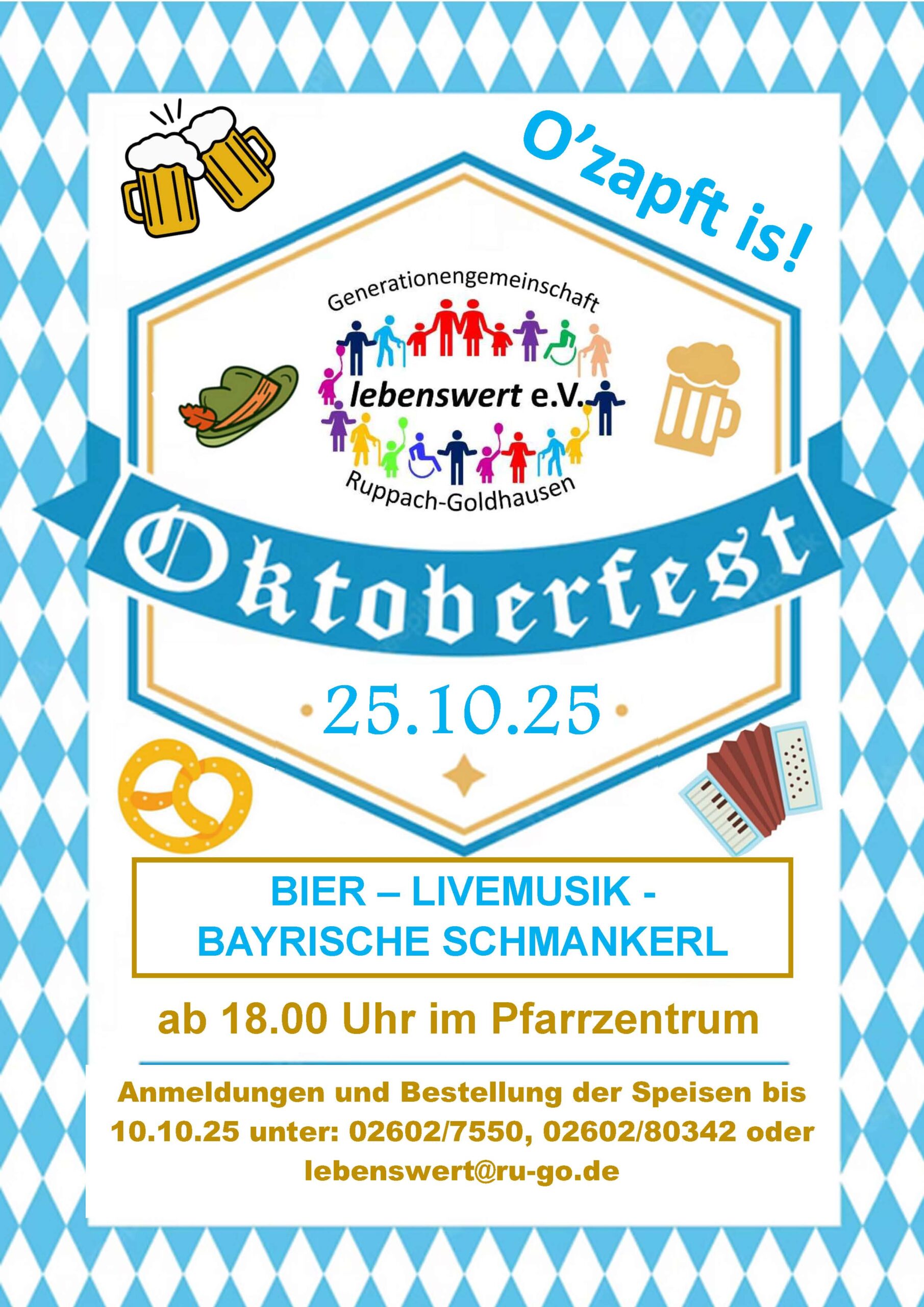 Oktoberfest der Generationengemeinschaft Ruppach-Goldhausen Pfarrzentrum + Zu Google Kalender hinzufügen + iCal / Outlook exportieren 00 Tage 00 Stunden 00 Minuten 00 Sekunden Datum 25 Okt. 2025 Uhrzeit 18:00 Labels Ruppach-Goldhausen Standort Ruppach-Goldhausen Kategorie Feste / Brauchtum Teile diese Veranstaltung