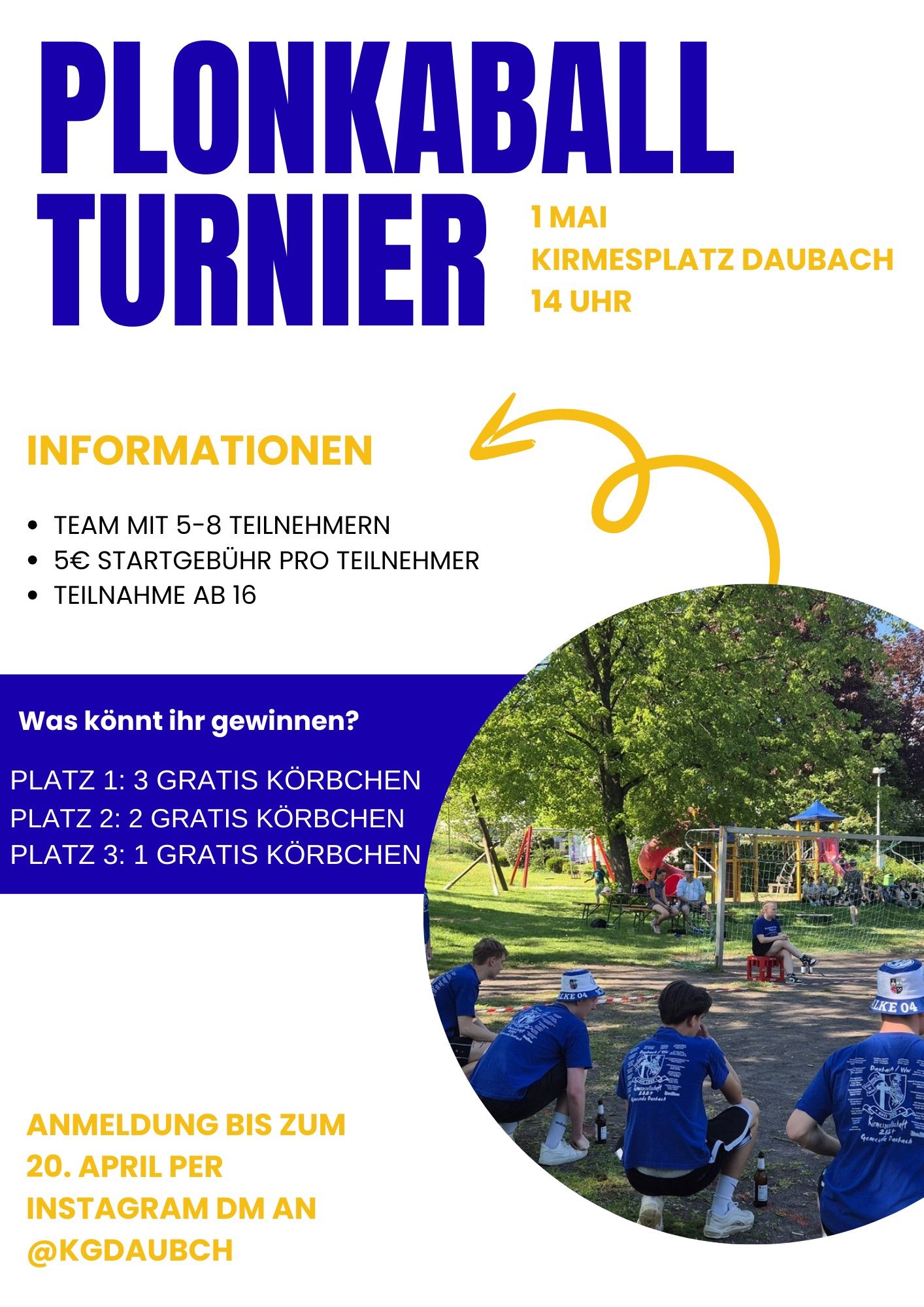 Plonkaball-Tunier der KG Daubach Plonkaball-Tunier der KG Daubach + Zu Google Kalender hinzufügen + iCal / Outlook exportieren 00 Tage 00 Stunden 00 Minuten 00 Sekunden Datum 01 Mai 2026 Uhrzeit 14:00 Preis 5.00€ Labels Daubach Standort Daubach Kategorie Feste / Brauchtum Teile diese Veranstaltung