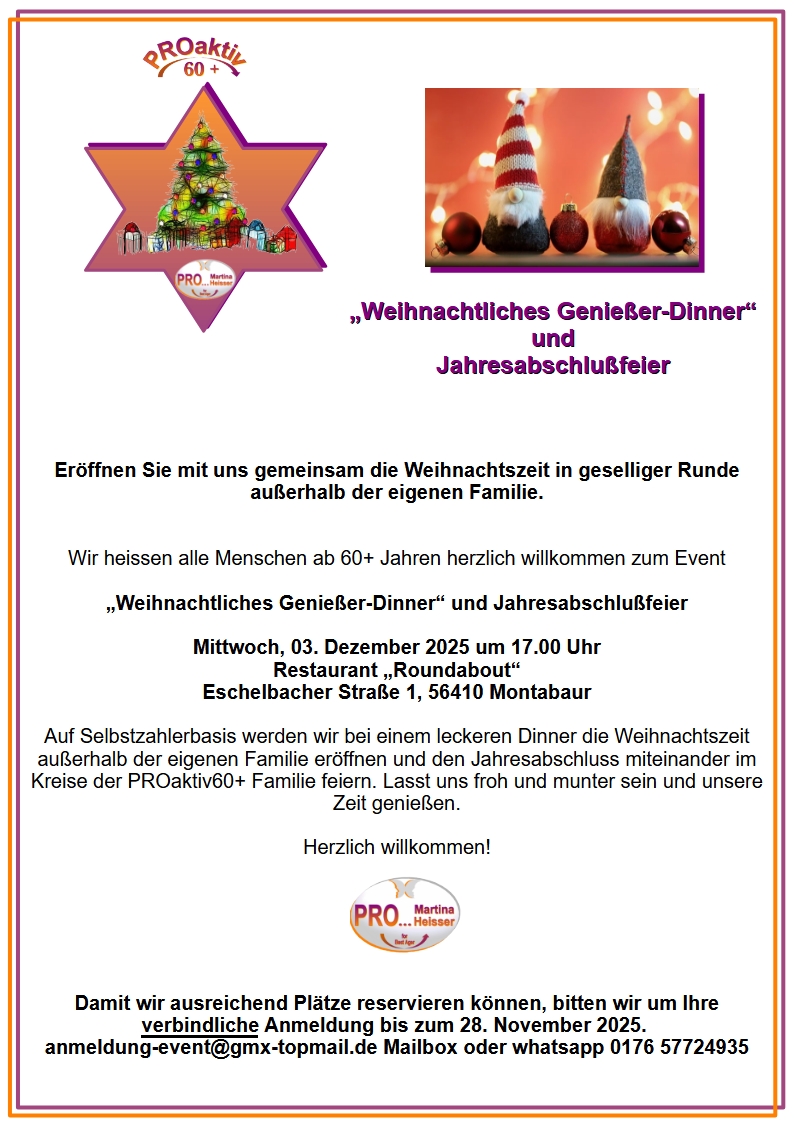 Proaktiv60+ Weihnachtliches Genießer-Dinner