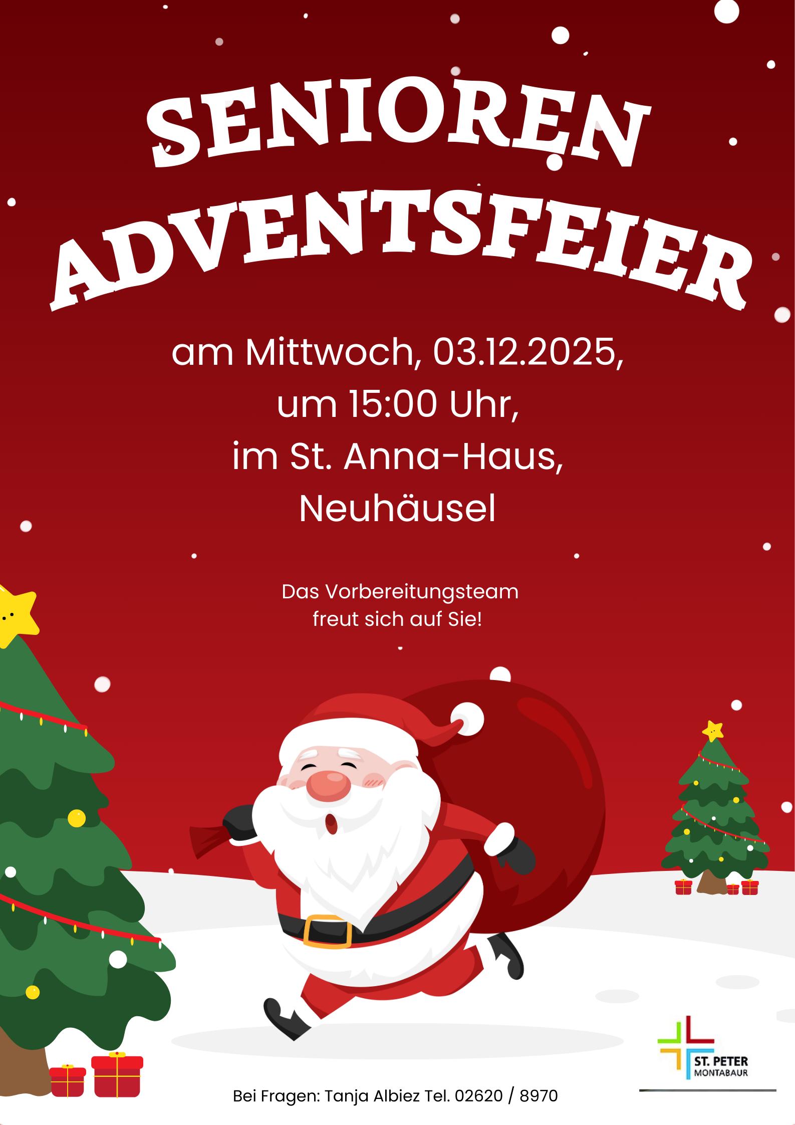 Senioren-Adventsfeier St. Anna Haus + Zu Google Kalender hinzufügen + iCal / Outlook exportieren Die Veranstaltung ist beendet. Datum 03 Dez. 2025 Abgelaufen! Uhrzeit 15:00 Labels Neuhäusel Standort Neuhäusel Kategorie Feste / Brauchtum Teile diese Veranstaltung