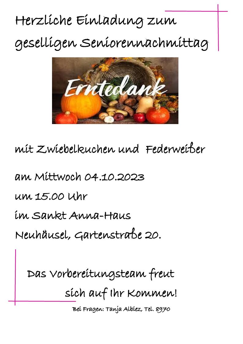 Seniorennachmittag Neuhäusel + Zu Google Kalender hinzufügen + iCal / Outlook exportieren Die Veranstaltung ist beendet. Datum 04 Okt. 2023 Abgelaufen! Uhrzeit 15:00 Standort Neuhäusel Kategorie Essen / Genuss Teile diese Veranstaltung