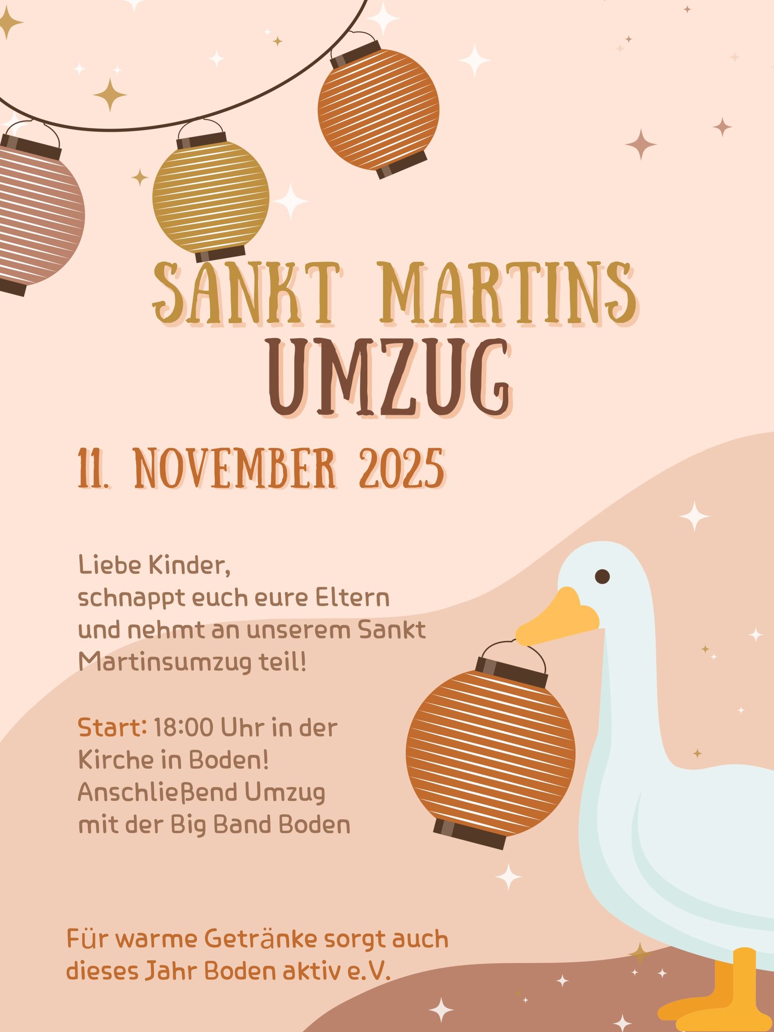 St. Martins Umzug Boden Kirche + Zu Google Kalender hinzufügen + iCal / Outlook exportieren 00 Tage 00 Stunden 00 Minuten 00 Sekunden Datum 11 Nov. 2025 Uhrzeit 18:00 Labels Boden Standort Boden Kategorie Feste / Brauchtum Teile diese Veranstaltung