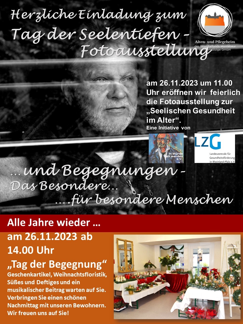 Tag der Seelentiefen-Fotoausstellung und Tag zur “Seelischen Gesundheit” + Zu Google Kalender hinzufügen + iCal / Outlook exportieren Die Veranstaltung ist beendet. Datum 26 Nov. 2023 Abgelaufen! Uhrzeit 11:00 Preis 0,00 Standort Montabaur Kategorie Gesundheit / Sport Teile diese Veranstaltung