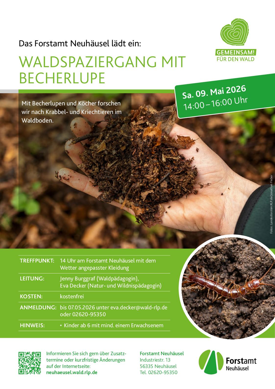 Waldspaziergang mit Becherlupe Forstamt Neuhäusel + Zu Google Kalender hinzufügen + iCal / Outlook exportieren 00 Tage 00 Stunden 00 Minuten 00 Sekunden Datum 09 Mai 2026 Uhrzeit 15:00 Labels Neuhäusel Standort Neuhäusel Kategorie Natur / Landschaft Wissen / Vortrag Teile diese Veranstaltung