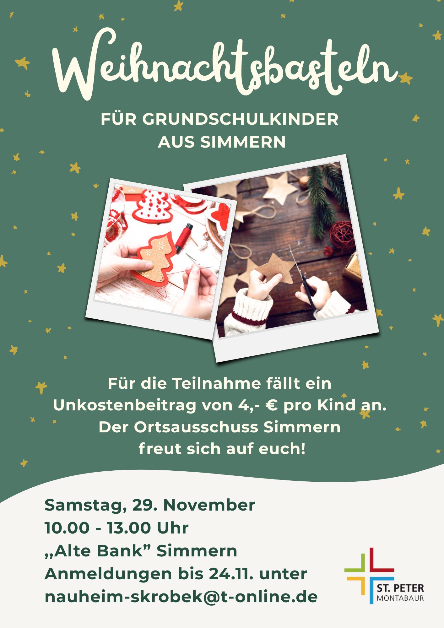 Weihnachtsbasteln für Grundschulkinder aus Simmern “Alte Bank” + Zu Google Kalender hinzufügen + iCal / Outlook exportieren 00 Tage 00 Stunden 00 Minuten 00 Sekunden Datum 29 Nov. 2025 Uhrzeit 10:00 Labels Simmern Standort Simmern Kategorie Kinder / Familie Teile diese Veranstaltung