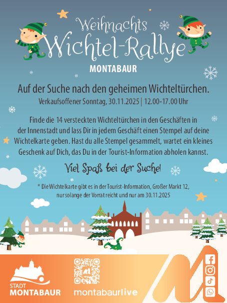 Wichtel-Rallye am verkaufsoffenen Sonntag + Zu Google Kalender hinzufügen + iCal / Outlook exportieren 00 Tage 00 Stunden 00 Minuten 00 Sekunden Datum 30 Nov. 2025 Uhrzeit 12:00 Labels Montabaur Standort 56410 Montabaur Kategorie Kinder / Familie Märkte / Shopping Veranstalter Stadt Montabaur Teile diese Veranstaltung